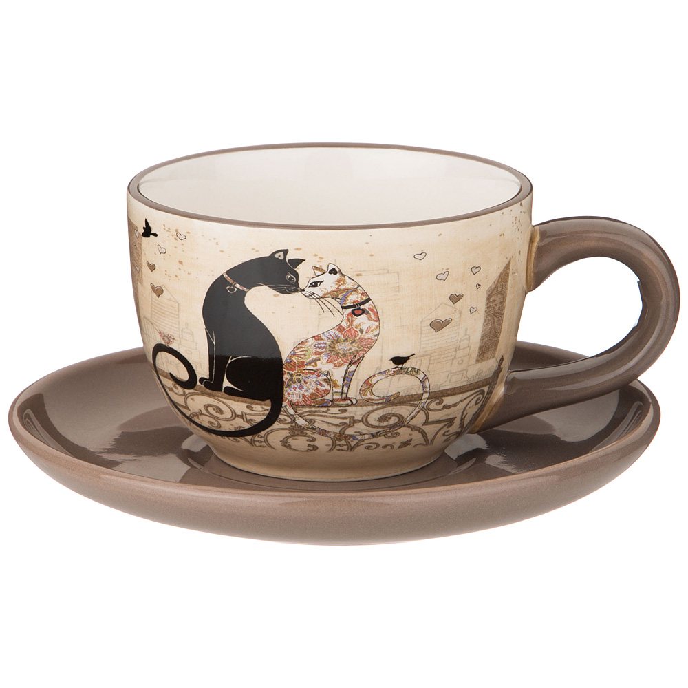 Чайная пара agness "парижские коты" 15*7 см 220 мл (кор=36наб.)