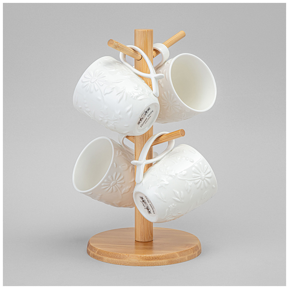 Набор кружек lefard "flowers story" на дерев. подставке 4 шт. 11*8*9,5 см 275 мл